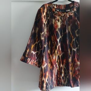 Vintage Abstract Wearable Art 3/4 wide sleeves Cardigan Jacket Multi Beaded 1X