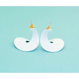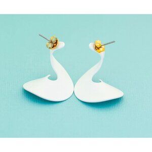 A pair of vintage avant garde white ceramic dangle earrings from Avon. Somewhat of an abstract shape resembling two swans.
