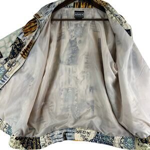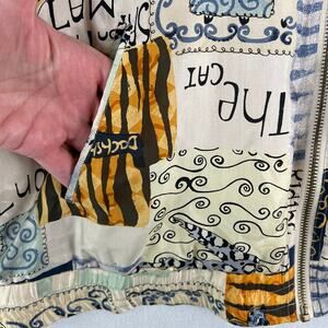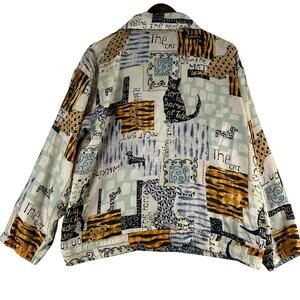 Vintage Abvien Silk Full Zip Front Bomber Jacket Geo Printed Dogs Cats SZ Med