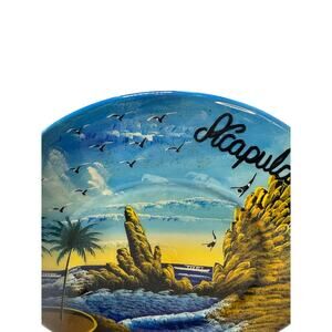 Beautiful memories of Acapulco shine through on this 8" wooden plate w/hanging mechanism. The cliffs, the diver, and the boats all come alive in this beautiful scene.