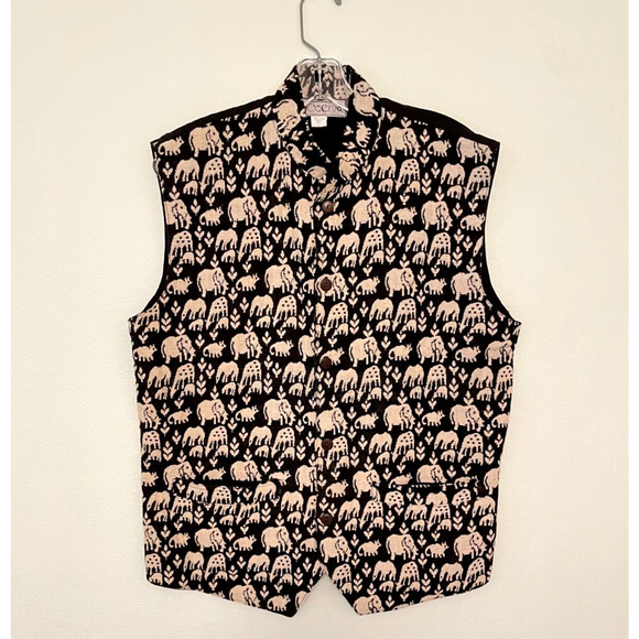 Vintage Accento Womens Vest Large Black Tapestry Elephant Art To Wear Boho 90s