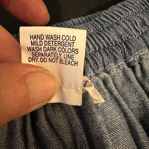 This vintage denim skirt offers a comfortable fit with its elastic waist and tiered design. Its classic blue color and versatile style complement a range of outfits.