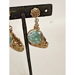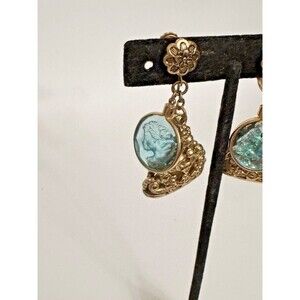 Vintage Accessocraft NYC Blue Cameo Dangle Earrings Goldtone Screwback Signed