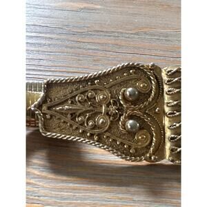 Vintage Accessocraft NYC Stretch Belt Small Ornate Etruscan Gold Tone Double