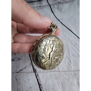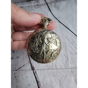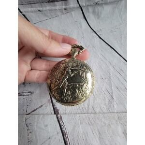 Vintage Accutime Hunting Scene Pocket Watch Gold Tone in good condition Untested