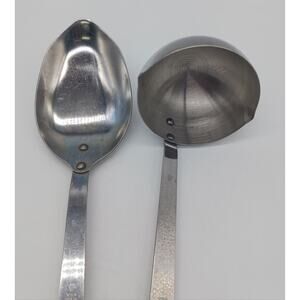 Vintage Ace Soup Ladle and Serving Spoon Light Gray Handle Lot of 2 Stainless USA