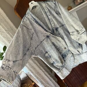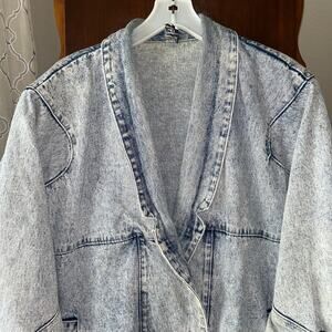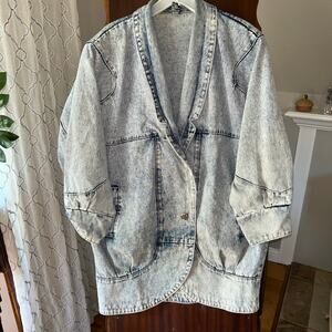 Vintage Acid Wash Blue Denim Jacket Long Oversized By Venus Clothing Large