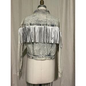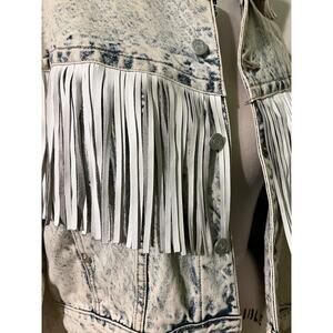 Vintage Acid Wash Cotton Denim Leather Fringe Jacket
