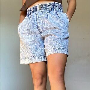 Vintage shorts, gathered high waist (no elastic), button and zipper closure, pleated front. Deep pockets are a plus that you don’t find in newer shorts for women! Hemmed but you could roll them if you wanted. Tag says size 9/10 but I usually wear 6/8 and they fit me just right. I am 5’10” and modeling in the pictures.