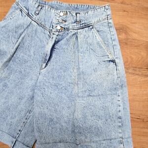 Vintage Acid Wash Denim Shorts Pleated High Waist Womens 12 Juniors 13/14