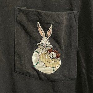 Vintage Acme Clothing Looney Tunes Bugs Bunny Taz Embroidered Pocket Tee Size XL