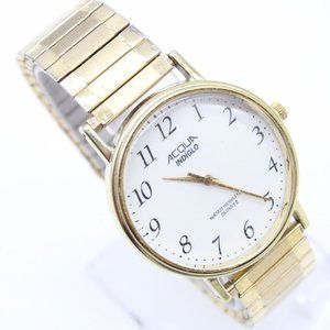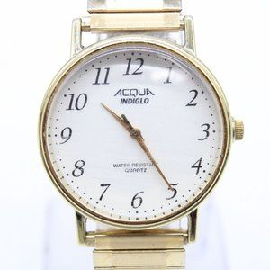 Vintage Acqua Indiglo Watch Mens Analog Quartz Classic Stainless Steel Gold Tone