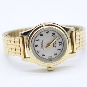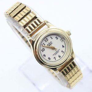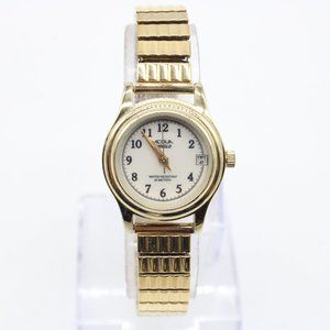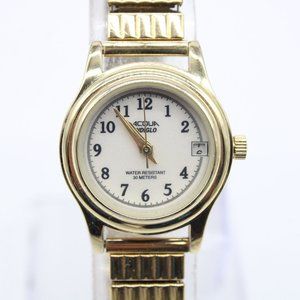 Vintage Acqua Indiglo Watch Womens Gold Tone Stainless Steel Classic Beige DIal
