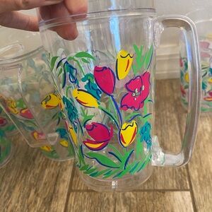 Vintage Acrylic 70s/80s Pitcher With Lid Cups Set Floral Summer Picnic Party Set