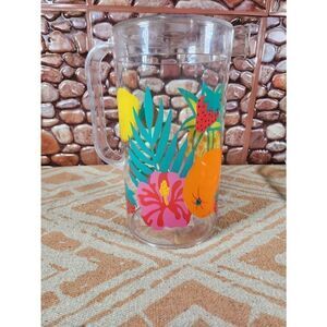 Elevate your dining experience with this Vintage Acrylic Fruit Pitcher and Serving Tray. Crafted with timeless elegance, the pitcher and tray set exudes retro charm. The acrylic material, adorned with vibrant fruit motifs, adds a touch of nostalgia to your tabletop. The pitcher boasts a classic silhouette, perfect for serving refreshing beverages, while the matching serving tray provides a stylish platform for presenting your culinary delights. Ideal for both casual gatherings and formal occasions, this vintage set seamlessly blends functionality with a dash of retro flair, making it a must-have for those who appreciate the artistry of both form and function.