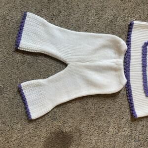 Vintage Acrylic Knit Baby 3-12M Outfit 2 Piece Set White Purple Pants Sweater