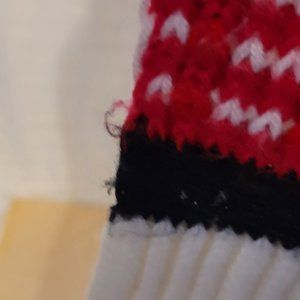 Vintage Acrylic Knit Scarf Fringe Ends Red Navy Ski Pattern Jeunique 60s 70s