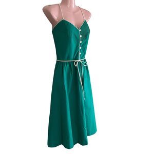 Vintage Act 1 Dress Womens 11-12 Green Midi Strappy Button Front Summer 90s