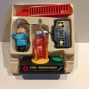 Vintage Action Fireman Set Battery Operated Remote Control Toy Climbs Ladder