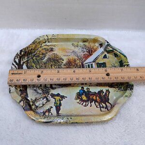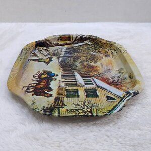 Vintage 1985 Action Industries Tin Small Serving Tray Winter Scene. Made in Honk Kong. In very good condition.