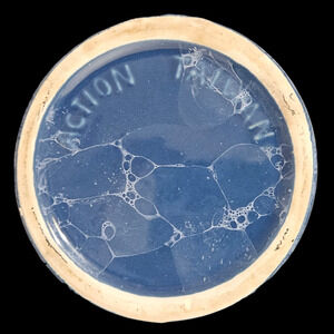 Pre-owned, excellent vintage condition. No cracks or chips; light surface wear and minor glaze variations typical of hand-applied finishes. Additional Notes: Marked “Action Pallian” on base; displays beautifully with classic bubble-glaze texture.
