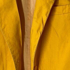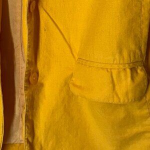Vintage Adam Douglass Yellow Blazer. Small stain by the pocket and lapel. Great color! Cotton linen blend, made in Korea. Pit to pit - 21, back collar to hem - 28.