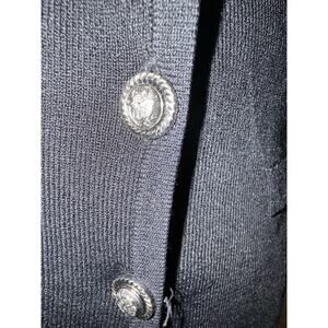 The sweater features silver buttons with a colon on the front, adding a touch of sophistication. It is dry clean only and comes in size S. This sweater is perfect for anyone who loves vintage clothing or wants to add a classic piece to their wardrobe.
