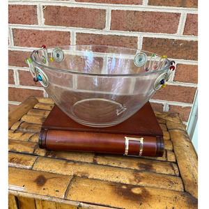 Vintage Adcraft Glass Serving Bowl w/ Applied Stainless Steel Wire Wrapped Beads