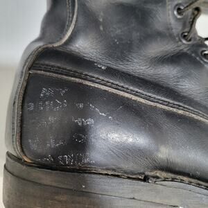 Step back in time with these vintage Addison Shoe Company black leather steel toe boots! These lace-up boots, dated 1979, exude a classic charm that's hard to resist. The sturdy soles are ready for any adventure, while the leather shows some marks that tell a story (please see photos for flaws). These boots effortlessly blend durability and style, making them a must-have for any vintage enthusiast. Get ready to turn heads and make a statement with these iconic boots!