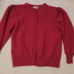 Beautiful hit pink lambswool blend in great condition. Size large fits a bit smaller. Please refer to the photos for measurements and material information before purchasing. Smoke and pet free home.