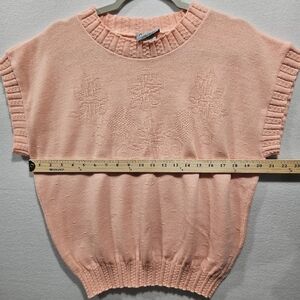 Vintage Adele Knitwear Salmon Pink Floral Pullover Vest Sweater Small Medium Made USA