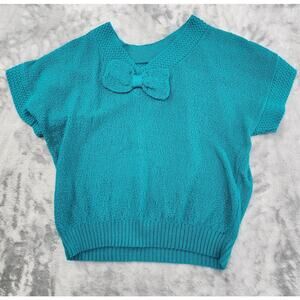 Vintage 80s Adele Knitwear Reversible V-Neck Bow Short Sleeve Sweater Size M Blue Teal Loose Fit Pretty Sweet Girly Feminine Romantic Big Bow V-neck V-back Retro Twee Cottagecore Vintage Reversible Spring Grandma Grandmacore Cute Fairy Preppy