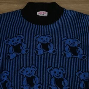 Vintage Adele Sweater Womens Large Blue Teddy Bear All Over Pullover 80s 90s USA