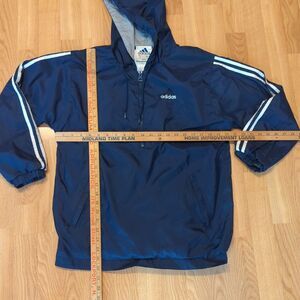 Vintage Adidas 1/2 Zip Pullover Hoodie Jacket Windbreaker Mens Large Blue Lined