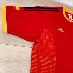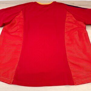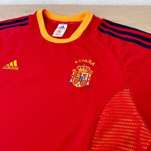 Pre-owned, gently used like-new condition Vintage Adidas 2002-2004 España National Soccer Jersey Home Kit (same style worn during matches played at the club's own stadium). Size XL. No stains, marks, holes or flaws. The Red and yellow are bright crisp clean and bold. Excellent vintage condition with minimal signs of wash and wear. Has been carefully cared for through use; washed on cold and hung to dry.