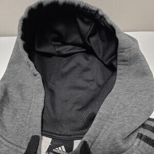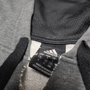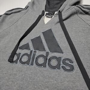 Vintage Adidas 3 Stripes Gray Hoodie Sweatshirt Men's Size Large Y2k. Cut collar . Light stains.