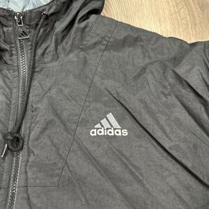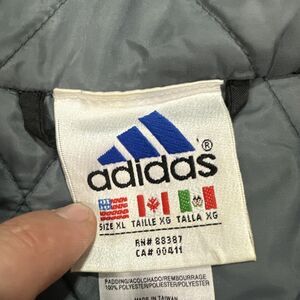 Vintage Adidas Black Gray Winter Hooded Oversized Quilted Jacket Mens Size XL