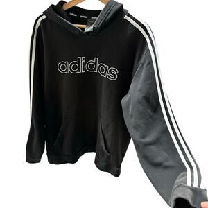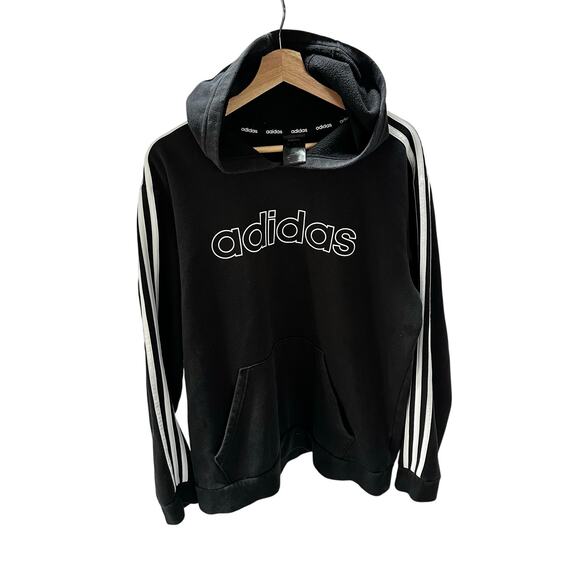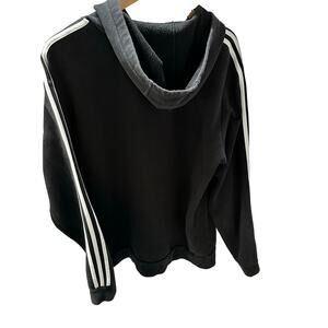 Vintage Adidas Black and White Striped Hoodie- Black Men's Size Large