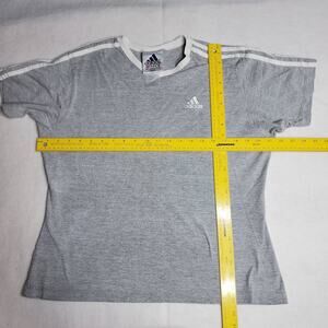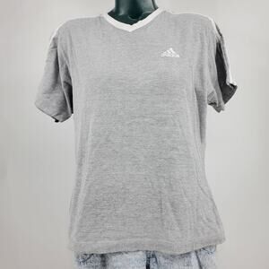 Vintage Adidas Grey White 3 Stripe V Neck T Shirt Embroidered Logo L 1027