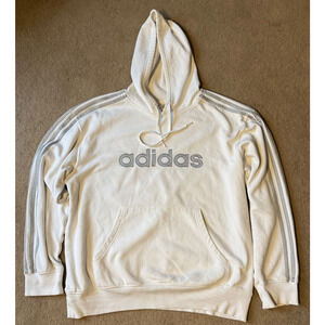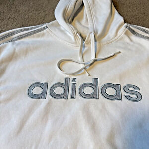 Vintage Adidas Hoodie Mens Size Large Spell Out Striped Sweatshirt White EUC