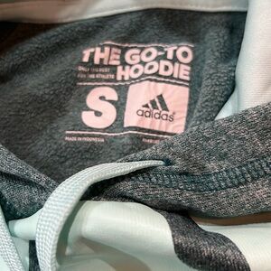 Adidas lot of 2. Both adult small. First is a dark green pullover hoodie. In great shape. Lined with the thin fleece. Soft and warm. Second is a mint green zip up hoodie. Also thin fleece lined. This one has a lot of piling as seen in pics. I’ll reflect that in price. Open to offers. Discounts for bundles.