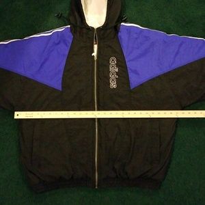 Amazing quality and design on this vintage Adidas jacket. Love the logo pull tab and the huge embroidered logo on the back. The item has been washed multiple times and still has a slight cigarette smell to it but still a great piece! This is tagged L but cam definitely fit an XL or even 2X. Feel free to ask questions or make offers!