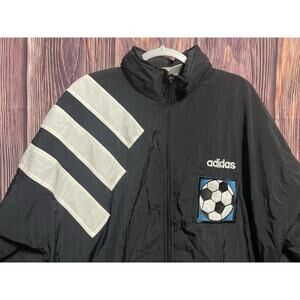 Vintage Adidas Jacket Mens XL Three Stripes Windbreaker 90s Soccer Futbol