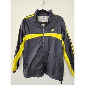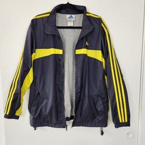 Vintage Adidas Med Navy Blue W Bright Yellow Full Zip Lined Nylon Windbreaker
