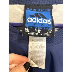 Vintage Adidas Pullover Mens 2XL Navy Jacket Windbreaker Lined 3 Stripe 90s