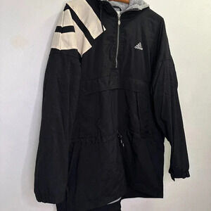 Vintage Adidas Quarter Zip Fleece Lined Hooded Adjustable Jacket Size Large
