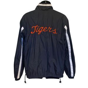 Vintage windbreaker with “Tigers” on back side. The word tigers is a little puckered. Please see/enlarge photos for details.
