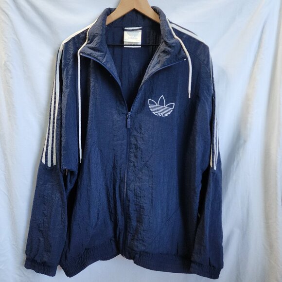 Vintage Adidas Track Suit Windbreaker Warmup Jacket Navy Blue LG 80s 90s Retro