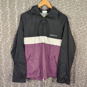 Vintage Adidas Trefoil 1/4 Zip Windbreaker Jacket Hidden Hood Size Medium