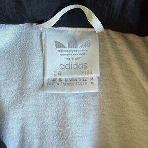 Classic vintage Adidas Trefoil windbreaker jacket featuring the iconic 3-stripe design across the shoulder. Made in Taiwan, this rare piece blends retro sportswear style with the original Trefoil logo. Nylon shell with cotton-blend lining, adjustable hood, and full zip closure.